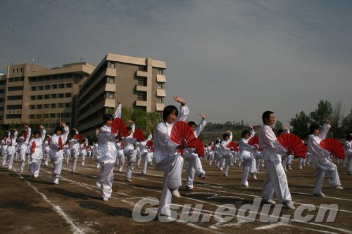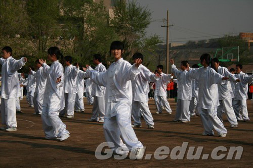 在运动会开幕式上,伟德师生表演了太极拳、手语舞、健美操、舞狮以及太极功夫扇等内容新颖、形式多样的文艺节目。其中,太极功夫扇表演和健美操表演作为参加甘肃省第一届大学生运动会开幕式表演节目进行了检验表演,表演阵容庞大,气势恢弘,场面尤为壮观。