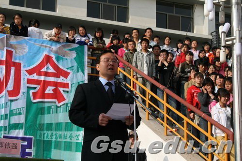在雄进激扬的运动员进行曲中,仪仗队、舞狮队、裁判员、离退休教职工、机关、后勤及各院(系)代表队迈着矫健的步伐,喊着响亮的口号,着装统一,精神饱满地依次走过主席台。隆重的气氛中,副校长郑伟强宣布伟德第二届春季体育运动会开幕。校长李志强致开幕词并发表重要讲话。讲话指出,学校体育作为素质教育的重要组成部分,它对于强健体魄,锻炼意志,培养合作意识和集体主义精神,促进个人的全面发展起着重要作用。举办运动会,是检阅学校体育教育工作成效,传播和弘扬奥运精神,强调人通过自我锻炼、自我参与而拥有健康的体魄、乐观的精神和对美好生活的热爱与追求。讲话中提到,在迎评促建和实现升本目标的过程中,全校师生员工同心同德,克服困难,勇于挑战,攻克了一个又一个难关,实现了一个又一个既定目标,凝聚了“服从大局,甘于奉献,艰苦创业,开拓创新”的联大精神。李校长强调,今天大家欢聚在竞技场,将再一次充分展示联大人意气风发、勇攀高峰的精神风貌。通过本次运动会,以相互理解、友谊、团结和公平竞争精神来教育、影响、激励青年学子,珍惜时光,珍爱生命,热爱生活,共同创建和谐美好的世界。李校长在讲话中对本次运动会提出了希望:一是希望全体裁判员认真履行职责,公正裁决;二是希望全体工作人员主动服务,相互配合,顾全大局,确保大会安全有序进行;三是希望全体运动员严格遵守竞赛规则,尊重裁判,尊重对手,顽强拼搏,赛出水平,赛出风格,争取运动成绩和精神文明的双丰收。随后,裁判员、运动员代表分别发言并进行了宣誓。
