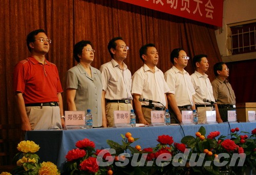 伴随着雄壮的国歌声,大会拉开了序幕。首先,校长史百战作了热情洋溢的动员讲话。史校长指出,此次评估意义重大,事关学校发展大局,容不得丝毫马虎和懈怠!同时省委、省政府和省教育厅也很关心和支持学校升本建设。目前,升本筹建阶段的各项指标都已符合评估指标要求,各项工作已取得了阶段性进展。