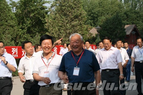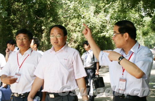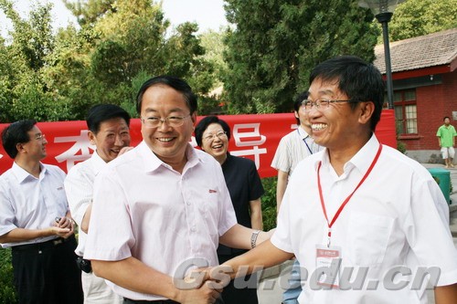 校长史百战与兰州理工大学副校长康龙亲切握手
