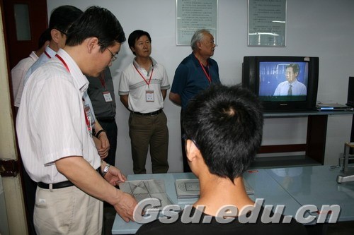 理工学院周教生老师向专家介绍电路分析实验室和可编程控制器实验室基本情况