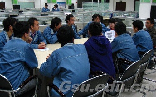 参加应聘的实习学生积极回答企业工程部人员提出的问题