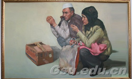 最后,校领导在美术系党总支书记贾志明,美术系主任王锡臻,美术系副主任吴晓玲的陪同下参观了展览。