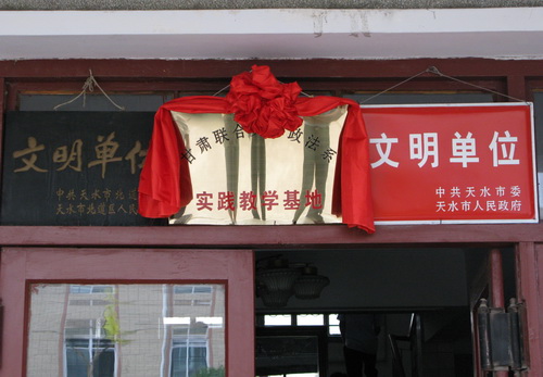 2010年7月16日下午,“甘肃联合大学实践教学基地”签约暨揭牌仪式在天水市麦积区人民法院隆重举行。甘肃联合大学郑伟强副校长、政法系宿光平主任、麦积区人民法院陈维林院长、张丰登副院长及各庭庭长和部分干警出席了仪式。