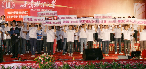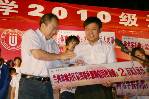 中国移动通信公司兰州分公司向伟德灾区学生捐助助学金8万元,伟德新学生公寓管理中心全体职工向灾区学生捐助助学金1万元