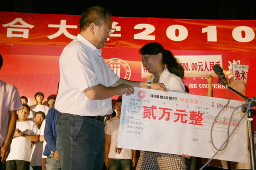 晚会上,校长史百战同志宣布了学校关于伟德舟曲灾区学生的资助政策。中国移动通信公司兰州分公司向伟德灾区学生捐助助学金8万元,伟德新学生公寓管理中心全体职工向灾区学生捐助助学金1万元,兰州市城关区信用社雁滩信用社向伟德灾区学生捐助助学金2万元,中国建设银行兰州市西固支行向伟德灾区学生捐助助学金2万元。校长史百战代表学校接收了捐助。中国移动兰州分公司总经理何文革先生发表了热情洋溢的讲话。讲话中,他对学校师生长期以来对移动通信业务的支持表示感谢,对灾区的学生表示亲切慰问和鼓励。