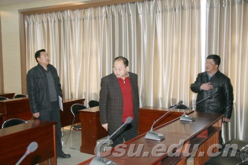 校长史百战来到校园网主控机房,仔细查看了设备配置、电源供给、校园网骨干拓扑、信息资源建设等情况,并向中心负责人了解了相关情况。网络中心主任高毅就校园网出口瓶颈及解决办法、新校园网络建设总体框架、校园网管理办法、学校信息化推进状况与策略、省内高校信息化建设情况、中心工作性质、中心的岗位设置、中心国有资产情况等分别向史校长作了重点汇报。