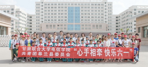 2011年5月30日,电子信息工程学院组织了“心手相牵,快乐六一”关爱农民工子女志愿服务行活动,学院的志愿者与帮扶基地皋兰县黑石川乡白崖小学的部分师生欢度节日。机关党总支书记、党委组织部副部长郭萍,电信学院院长张会凌,党总支书记李恒杰,副书记、副院长王金平,共青团皋兰县委的领导参加了此次活动。