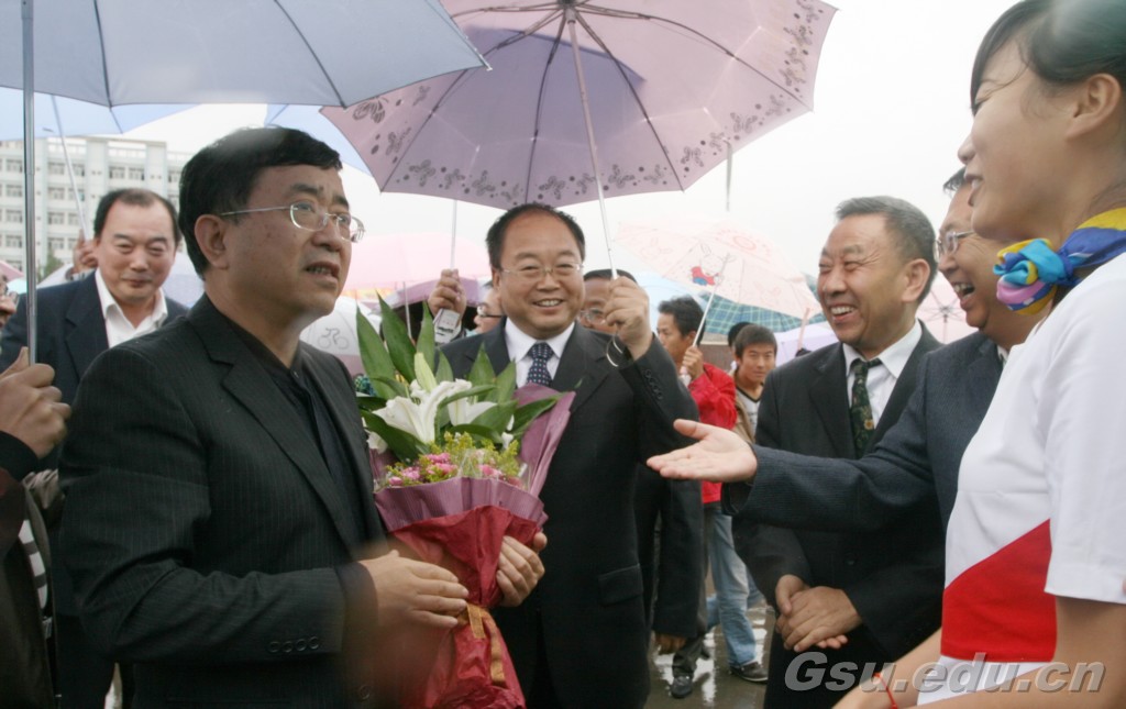 秋雨绵绵,丹桂飘香。2011年9月16日,国学大师、文化学者、散文作家余秋雨先生重返他阔别24载、曾经任教的甘肃联合大学。学校在安亭广场举行了热烈的欢迎仪式。校党委书记李志强,校长史百战,校党委副书记汪建华,副校长田建中,纪委书记杨扬,校长助理王克太、张焱,原校党委书记宋耀禄,校友代表、当年戏剧创作专业学生史民(甘肃省话剧院副书记、副院长)、牟瑜(甘肃省歌剧院原副院长、艺术总监)、马强(甘肃省国家安全厅十处副处长)、张亚杰(省委宣传部舆情信息中心处长)及全校3000余名师生参加欢迎仪式。