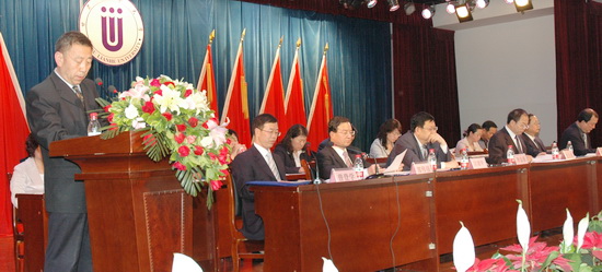 校长史百战同志代表学校向大会作工作报告,报告的题目是:《提升办学层次 突出办学特色 为推动学校稳步转型发展而努力奋斗》,报告分三部分:一、2011年工作回顾;二、机遇与挑战;三、全力推进学校稳步转型发展。