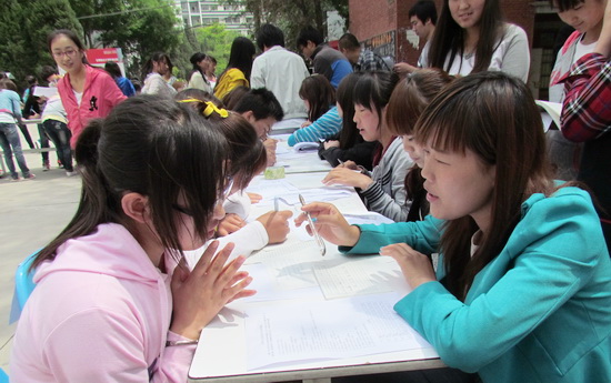5月24-25日,大学生心理健康教育与咨询中心组织师范学院2010级心理咨询专业、2011级心理咨询专业90名学生在北校区小操场开展心理测验、心理辅导与心理咨询活动。