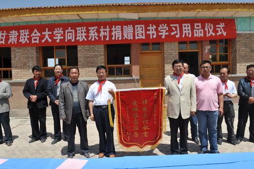 两所小学向甘肃联合大学赠送一面“情系乡村教育,爱暖农家孩子”的锦旗。
