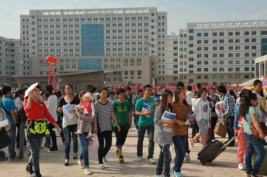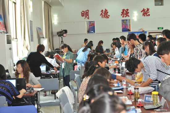 迎新点的工作人员在热情地接待新同学