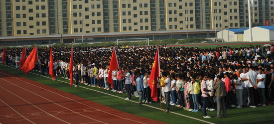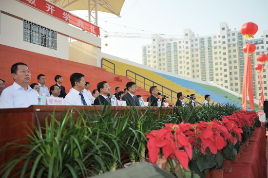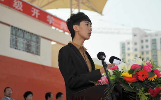 典礼在雄壮的国歌声中开始。校长史百战发表了热情洋溢的讲话(全文)。他代表学校向3300多名新同学表示热烈的欢迎和诚挚的祝贺!教师代表、在校学生代表、新生代表分别在开学典礼上发言。