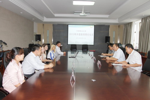 2012年9月11日,学校在第一会议室举行外籍教师聘任仪式。校长史百战出席聘任仪式,学校办公室、外事办、外语学院负责人、外教及合作教师参加聘任仪式。