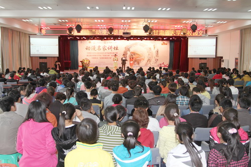 活动中,职业时事漫画家、新媒体政治漫画推动者、《南方都市报》美术编辑、全国漫画金龙奖评委邝飚先生运用通俗幽默的方式将动漫作品的创作思路与时代发展相结合解析了中国动漫的发展,展示了国内的优秀作品,增进了场内师生对动漫的了解和认识。同时现场还推出了邝飚先生的签名赠书活动和涂鸦比赛,给在座大学生提供了充分交流、展示的机会,使同学们在参加的过程中加深了对动漫的理解和兴趣。进一步提高了学生的文化素养,为培养学生就业、见习技能铺就了良好的平台。
