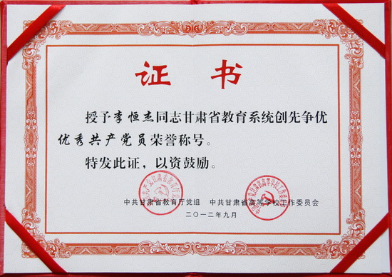2012年9月20日,省教育厅组织召开全省教育系统创先争优活动总结表彰大会。
