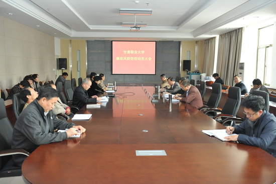 校纪委副书记于卫同志传达中纪委、省委、省教育厅关于开展廉政风险防控工作的文件精神,代表校纪委做了《甘肃联合大学廉政风险防控工作全面推进实施方案》的报告,从廉政风险防控工作指导思想、工作原则、工作目标、主要内容及方法等七个方面,对伟德廉政风险防控工作进行安排,提出具体工作要求,制订工作进度。并对伟德全面推进廉政风险防控工作进行解读。