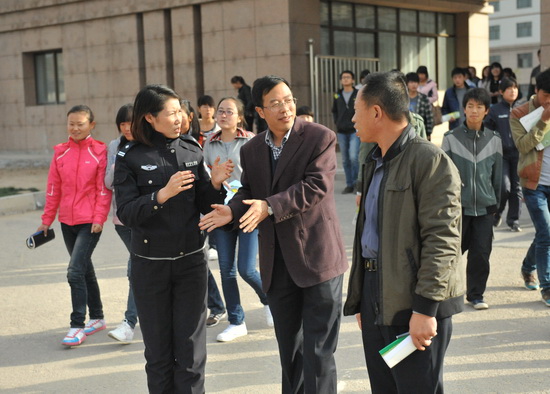在交谈中,雁滩交警大队张汝东队长表示这次来学校调研座谈,看到了学校领导和相关部门非常重视这项工作,做了大量地工作,采取了有效措施,这些做法都非常好,收到了一定效果。从察看的情况来看,学校面临的客观因素很复杂,在治理上有一定难度。作为交警部门我们大力支持学校的工作,一是配合学校做好宣传教育工作,通过典型案例、宣传片、图片等多渠道宣传教育;二是加强交警巡逻,做好培训工作,安排辅警执勤;三是与有关部门协调做通行斑马线、隔离栏、警示牌;四是加强与学校保卫、交通运输部门的沟通联系;五是学校和我们雁滩交警部门积极督促城投、市政部门安装红绿灯指示、摄像头监控等设施。