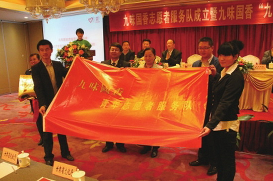 10月27日,由甘肃联合大学青年志愿者协会和滨河九味国香品牌营销有限公司共同组建的滨河九味国香青年志愿者服务队宣告成立,并正式启动滨河九味国香青年志愿者服务队2012-2013年度“九个一”爱心公益项目。