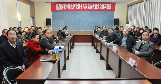 11月8日上午9时,中国共产党第十八次全国代表大会在北京人民大会堂隆重召开。学校党委在视频会议室组织副处级以上干部收看党的十八大开幕式现场直播,校领导李志强、史百战、汪建华、郑伟强、杨扬及校长助理张焱出席会议。