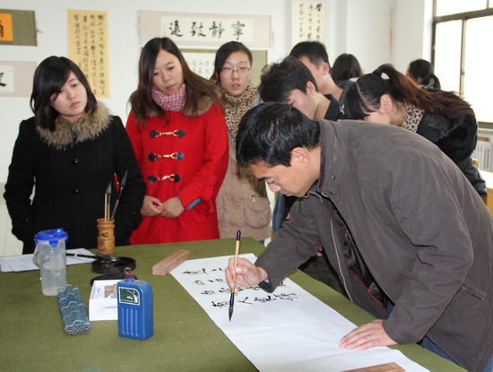 11月22日,在南校区1号教学楼604#,由人文学院主办、2010级汉语会展班承办,举办学生“张鹏书法作品”展览。