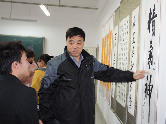 活动当天党委宣传部、音乐系负责人、人文学院领导及各位老师来到展览现场。各位老师观看了张鹏作品,大家一致肯定了此次展览的意义,汤书记表扬了该班同学们的实践活动,鼓励同学们积极参与实践,多组织开展一些文化活动,在实践中不断提高能力,锻炼自己。