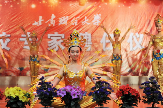 音乐系和省艺校的师生表演了精彩的文艺节目,聘任仪式在隆重、祥和的气氛中圆满结束。