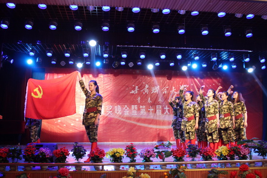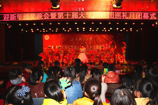 12月21日晚7时,萃文厅张灯结彩,花团锦簇,全校1000余名师生欢聚一堂,举行了“青春永向党”迎新年颁奖晚会暨第十届大学生社团巡礼月闭幕式。晚会为2012年暑期文化科技卫生“三下乡”社会实践活动先进集体及个人颁奖;为2012年度“优秀学生社团”、“优秀社团骨干”、“优秀社员”颁奖;为“关注十八大,青春展风采”主题征文比赛、第一届校园美食文化节活动的优秀选手颁奖。
