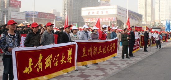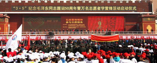 3月5日上午,兰州市东方红广场,人潮涌动,彩旗招展,激情飞扬,甘肃省纪念毛泽东同志题词“向雷锋同志学习”50周年暨万名志愿者学雷锋活动启动仪式在这里隆重举行。校团委组织伟德团学干部、学生代表、青年志愿者共计200余人参加了了启动仪式。