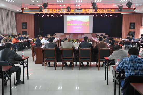 3月15日下午,党委中心组扩大学习会在思源楼萃文厅举行。本次学习的主题是:学习贯彻十八大精神,安排部署 学校2013年工作。校领导史百战、汪建华、郑伟强、杨扬、普登学,校长助理张焱出席学习会,校院两级中心组成员、全校副处级以上干部、正高职称人员共120余人参加了学习。学习会由史百战校长主持。