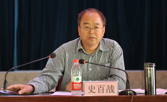 校长史百战作题为《学习贯彻党的十八大精神 强化办学特色实现转型发展》的开班第一讲