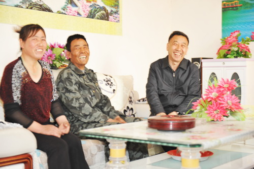 李书记一到联系村,即刻与直滩乡党委书记仲乐堂等乡村干部一起,分别到联系户宋登贤、林如信、杨生元家中了解情况。李书记详细了解每家承包地的旱情和春耕情况,以及老人的健康状况、孩子们的学习情况等。在村民宋登辉家,当李书记得知村里人畜饮水都不存在问题时心里感到非常欣慰,高兴地和大家一起品尝了主人刚刚做好的烧锅饼;李书记一直关心着联系户杨得斌的身体状况,老杨干活时不慎从养殖棚上摔下,头部受伤,李书记详细了解了他的恢复情况,嘱咐老杨保重身体。
