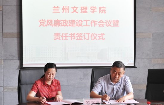 会议最后,党委书记李志强同志代表校党委与各单位党政负责人签订了党风廉政建设责任书。