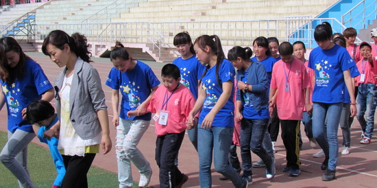 5月24日上午,伟德36名志愿者在心理健康教育与咨询中心主任王成德副教授带领下,奔赴兰州市七里河区灵星特殊教育中心,协办壹基金海洋天堂计划――西北地区自闭症儿童社会融入活动“第二届六一亲子运动会”。