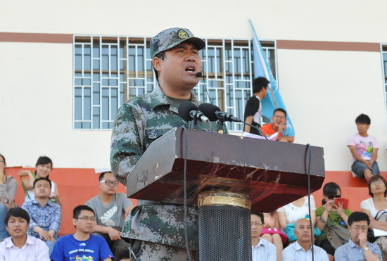 军训团团长、甘肃省陆军预备役训练基地副主任张志伟同志代表承训部队作了讲话。他说,通过短短十几天严格规范的军训和军事化管理,同学们从精神面貌和日常规范上已焕然一新,希望同学们牢记军训经历,在今后学习、工作和生活中继续保持和发扬军训中的优良作风,以积极的姿态迎接各种挑战。