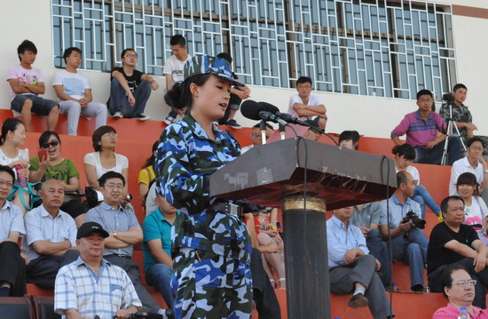 参训学生代表吕洁同学作为受训学生代表作了发言。她代表所有受训学生对学校和教官致以崇高的敬意,同时表示,一定会牢记领导、老师和父母的殷切期望,发扬军训中吃苦耐劳、顽强拼搏的好作风,努力学习。