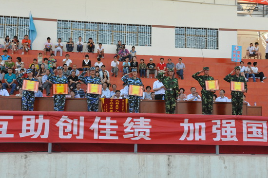 纪委书记杨扬同志宣读了《关于表彰2012级学生军训优秀组织奖 优秀教官 优秀学生优秀宿舍的决定》,学校领导向获奖集体和个人颁发了获奖证书。