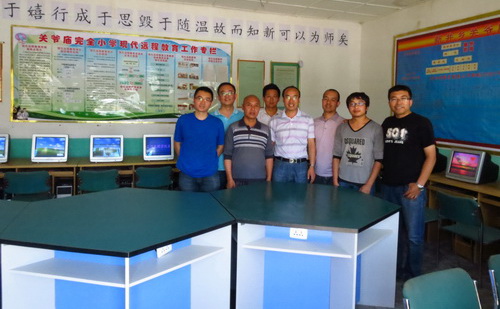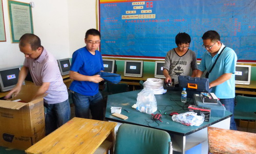 为两个联系村小学援建计算机室是按照今年学校双联工作要点安排实施的。为了不影响小学正常的教学工作,实施时间选择了暑假。7月15日,人事处副处长王全胜、国资处副处长杨旭带领国资处、驻站工作人员以及电信学院张旭、王栋、王万军老师,携带40台电脑和附属设备、建材等,到联系村小学组织实施计算机室建设。