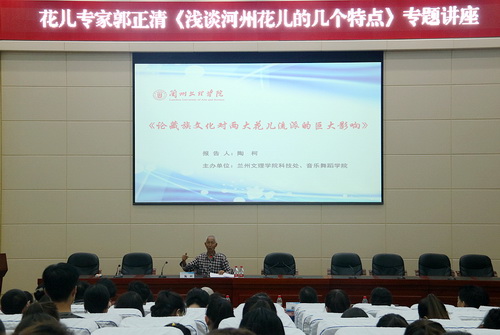 陶柯教授以其渊博的学识、独到的见识为我们作了一场精彩的报告,他清晰的梳理了花儿的演唱风格和艺术特征,尤其是在藏族文化对两大花儿流派的重大影响及河州花儿的特点深入阐述,还有自己的研究突破,资料翔实,加之他长期在花儿演唱中积累的实践经验,让我们了解了花儿艺术的博大精深。现场进行了很好的交流互动,师生们关注的问题陶教授予以了很好的解答。