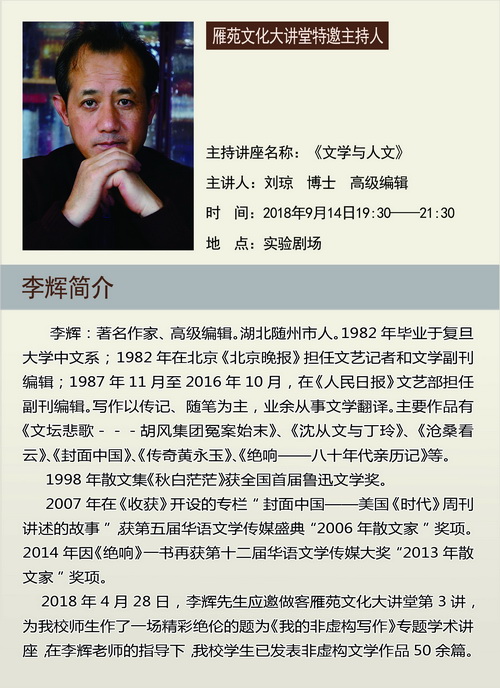 著名作家刘琼女士、李辉先生走进雁苑文化大讲堂
