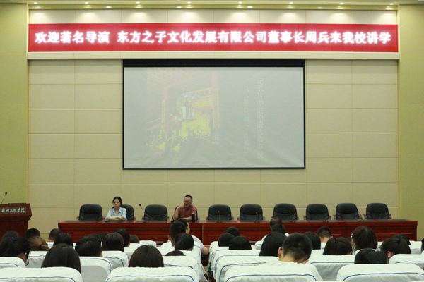 周兵导演为学生们分享了20年来自己在纪录片事业创作的艰辛历程和自己多年积累总结的丰富经验,讲述了自己对中国古典音乐的热爱追求及对中国传统文化的执着探索。与此同时他为同学们播放了纪录片《台北故宫》片头曲《爱延续》,旨在让大家感受优美动听、令人安逸舒适的旋律,从而感受歌曲传达出来的海峡两岸薪火相传、一脉传承的亲情,进一步提升学生对于剧本创作在艺术表达上的理解。