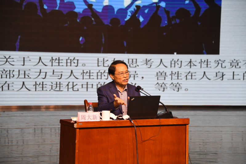 讲座伊始,周大新先生与大家分享了自己的文学“情缘”,从小喜欢故事的他对读书也是“情有独钟”。当兵时偶然的机会让他读到列夫托尔斯泰的《复活》,周先生第一次感受到了文学的魅力,开始萌发了写作的念头。