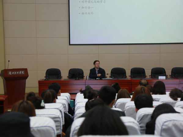 徐兆寿教授运用‘媒介即信息’和‘信息即存在’讲述了麦克卢汉及自己对于媒介、信息的观点,并以微信为例向学生阐释如何理解自媒体。针对“传媒专业同学形象气质佳但却缺乏读书,文化底子薄”这一问题,徐兆寿教授提出了经典+专业的读书方法,并以北京大学、清华大学、浙江大学、复旦大学的各读书榜为例,特别指出,文化是融媒体从业者需要的最持久的能力,在文化养成的过程中要以遵守礼仪之道为前提的读书开始。