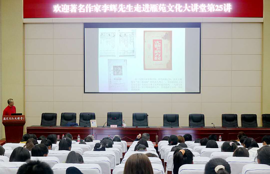李辉首先从巴金先生从事文学创作谈起,然后以详实的史料和自己的访谈实录为基础,真实展现了巴金先生与沈从文、曹禺、萧乾等作家交往的情谊与友谊。在讲座中,李辉将四位作家的代表作穿插其中,如《边城》《幻灭》《雷雨》《北京人》等,通过讲解这些作品的创作背景,阐释了这些中国现代文学史上的名篇佳作。