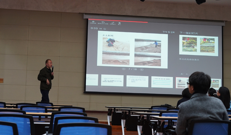 沙龙最后由甘肃多年来一直从事公益事业、艺术乡建的实践者胡建强老师为大家分享了自己研究生毕业由最初在北京从事艺术策展工作,转向在乡村创办“百姓幼儿园”的历程,并为大家详细分享了自己从事幼儿教育的理念和做法。在经历数年的坚持后,“百姓幼儿园”因种种原因停办,随后他投入乡村书院的公益事业,继续通过乡村书院服务于乡村儿童。胡建强老师分享了自己创业的艰辛,但他相信只要坚持初心,明白自己在创业过程中想做什么,只要目标清晰,有所坚持,在创业路上资金、人才这些问题都能解决。同时,胡建强老师也是艺术介入乡村建设典型案例——秦安县石节子村的主要策划者和多年的坚守者和建设者。并为同学们分享了艺术与乡村振兴关系的思考。
