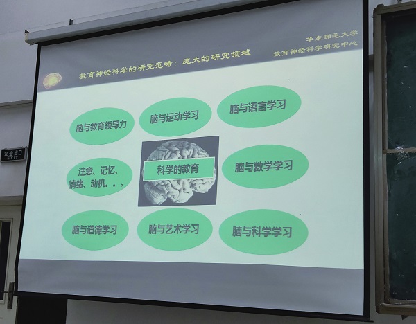 讲座伊始,周加仙教授介绍了教育神经科学这一不仅能够解决教育实践问题,还能满足国家重大需求的新兴交叉学科,指出教育神经科学打开人脑学习的黑箱,它的诞生为教育带来翻天覆地的变化。随后,周加仙教授用直观明了的数据说明了婴幼儿、儿童青少年的脑发育与神经可塑性,用生动有趣的案例讲解了人类有效教学的原则与特征,并着重为同学们讲解了婴幼儿阅读能力的构成、婴幼儿天生的语言学习能力、促进婴幼儿语言发展的有效教育策略等方面的问题,鼓励同学们积极探索,开拓视野,用教育神经科学的知识点燃学习的热情,为将来的学习工作生活打好基础。