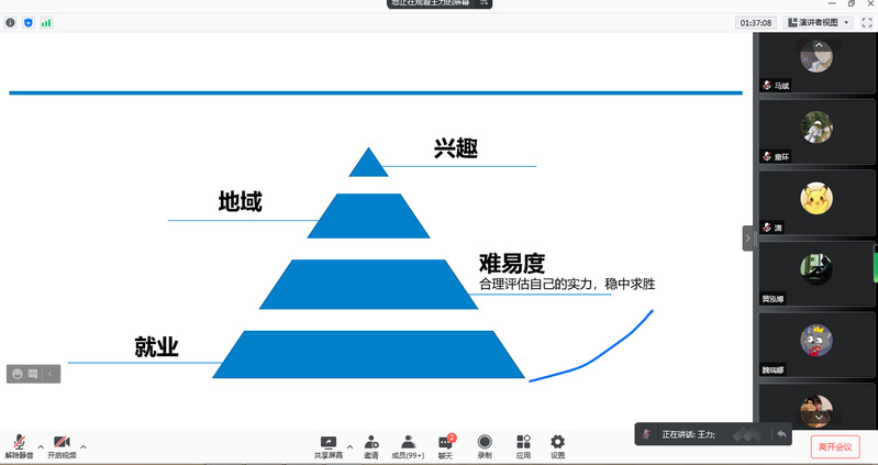 王力博士结合自己的学习经历为同学们分享了考研经验,他说,充足的复习时间很重要,但效率更重,大家要合理安排学习时间,不要落下任何科目,强调掌握基础知识的重要性。