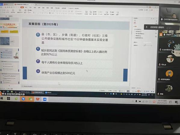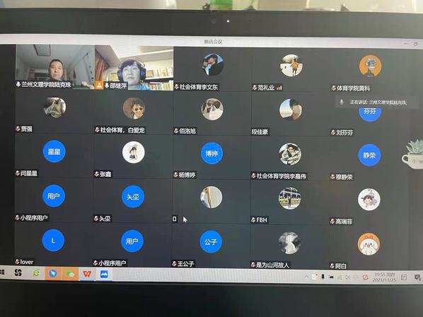 为进一步提升社会体育学院整体科研教学水平,实现疫情期间“停课不停学、在家也要积极做科研”的目标,11月25日,社会体育学院邀请兰州财经大学邵继萍教授为学院社会体育指导与管理专业的学生做了题为《“新周期”全民健身实施计划解读》的专题学术讲座,讲座通过线上会议在线直播的方式进行,学院全体师生观看了本次讲座。讲座由社会体育学院党总支书记陆克珠主持。