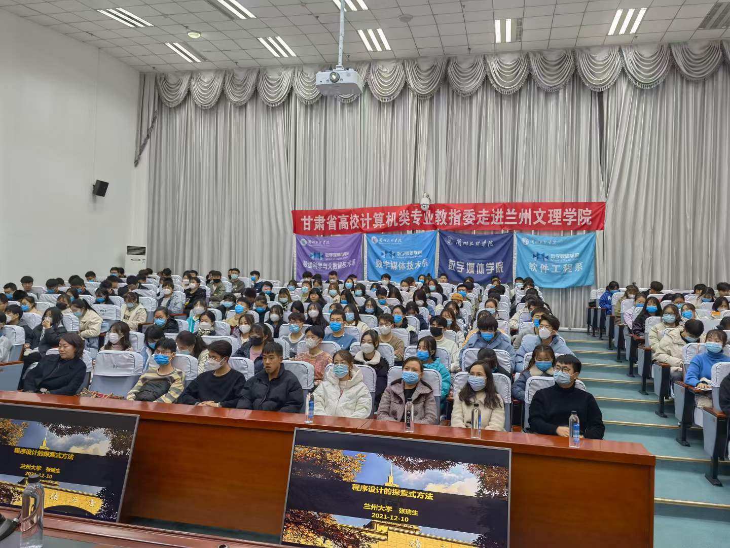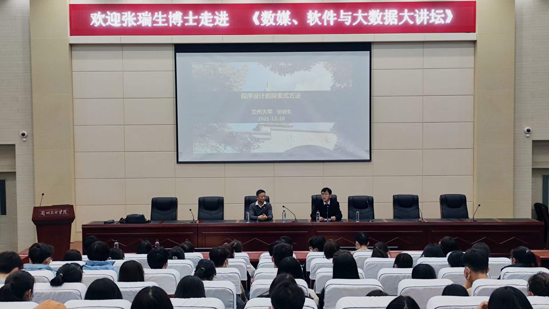 为了让2021级学生掌握科学的学习方法,有效提高学习效率,了解学科前沿发展,12月10日,数字媒体学院邀请兰州大学信息科学与工程学院网络空间安全研究中心主任张瑞生教授,走进数媒学院大讲坛,为数媒技术、软件工程及大数据专业的210名学生做了题为“程序设计的探索式方法”的专题学术讲座,此次讲座由数媒学院院长李恒杰教授主持。